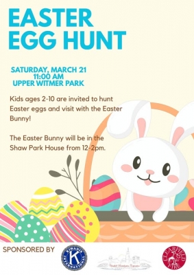 The Easter Bunny will be in the Shaw Park House from 12-2 pm